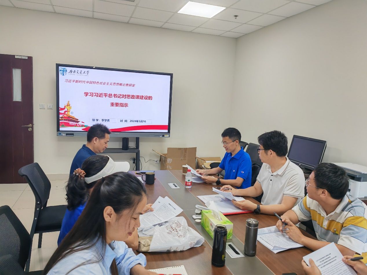 党委委员、课程负责人李学勇教授带领教研室同仁集体学习了习近平总书记对学校思政课建设的重要指示和新时代学校思政课建设推进会精神,大家围绕如何第一时间、最大限度把重要指示和会议精神融入课堂教学之中,推动课程教学高质量发展等展开热烈讨论和深入交流。