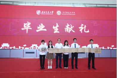 还特别为毕业生定制了“毕业行囊”,包含帆布包、晴雨伞、水杯、校园明信片等。廖军向毕业生代表赠送了毕业礼物,希望这份礼物能够成为人生中美好的回忆和启程的祝福。