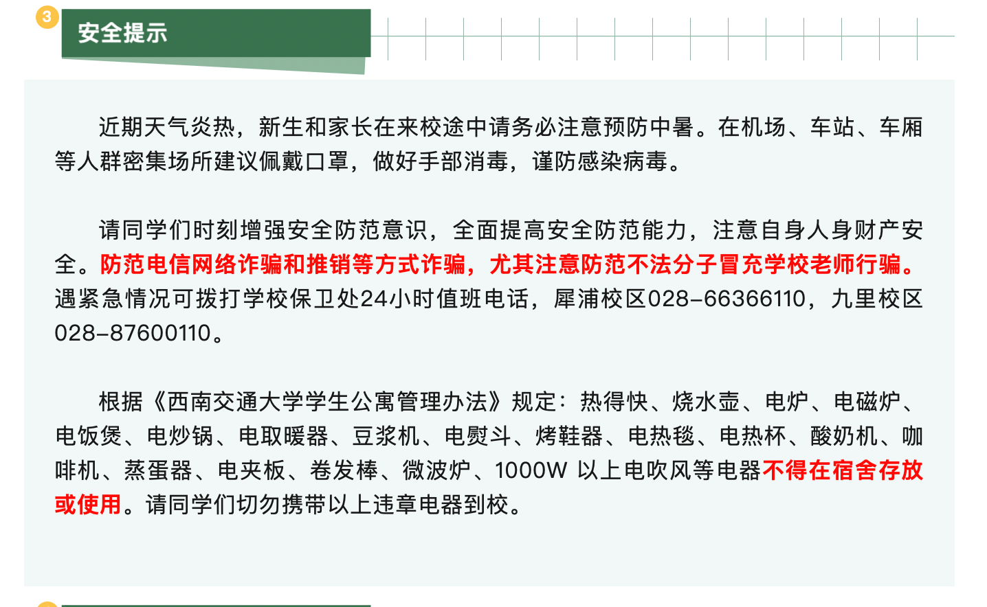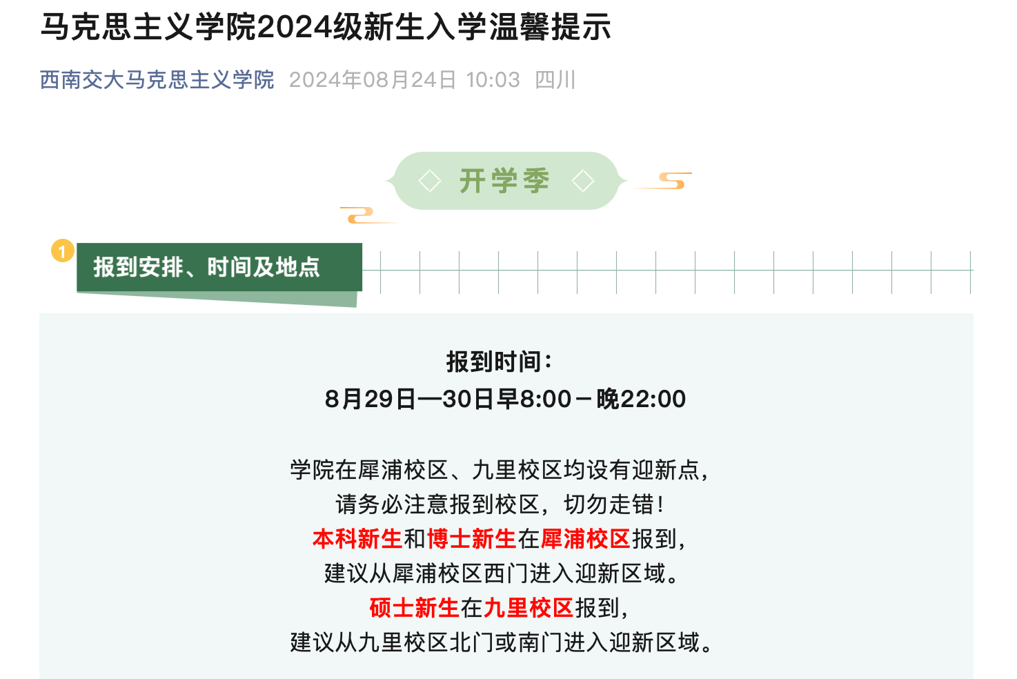 在公众号上发布了新生入学温馨提示,为新踏入校园的学生们提供一份贴心、全面的指引,帮助他们更快地适应新环境,融入大学生活。这份提示涵盖了报到流程、安全提示以及校园生活的基本信息。