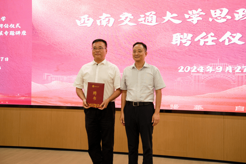 思政课特聘教授聘任仪式暨大学生学习与发展专题讲座。学校党委副书记高平平,中共成都市郫都区教育工委书记、郫都区教育局党组书记、局长韩海东,学校麻豆传媒