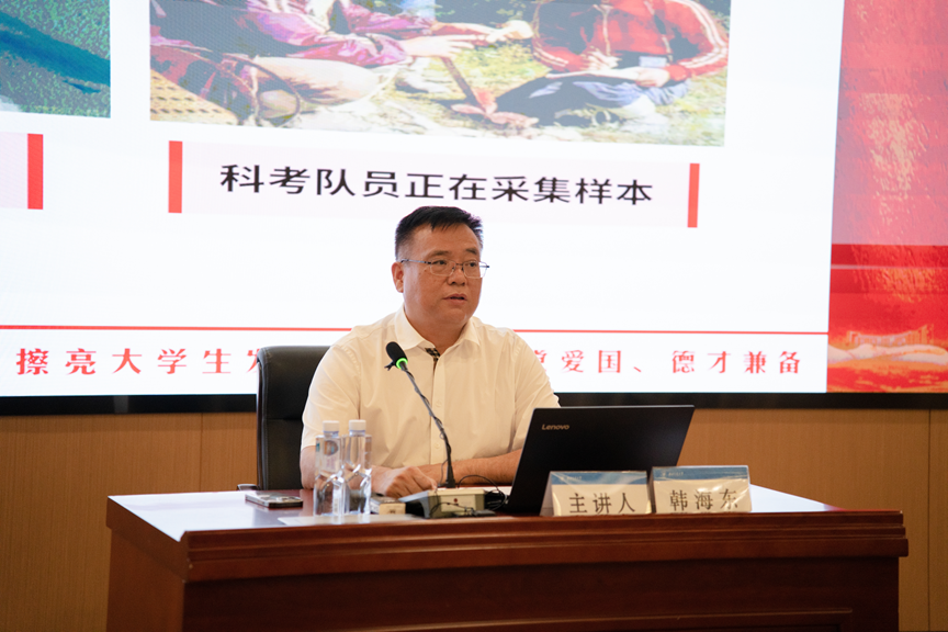 聘任仪式结束后,韩海东以《擦亮底色 认清方向 提升素质 做时代新人》为题讲授了一堂精彩的思政课。从“爱党爱国、德才兼备”的大学生发展底色,到认清大学生发展的方向,再到“爱岗敬业、守正创新”的就业素养,韩海东结合自身成长经历,对照融入新时代发展背景与人才需求,以娓娓道来的亲切讲述为学生描绘了一条成为时代新人的清晰路径。课堂上掌声连连,有同学谈到,“这不仅是一堂意义匪浅的思政课,更是一堂职业生涯规划课”。大家纷纷表示,要进一步明确身上肩负的时代责任,积极投身于社会实践,努力成为堪当民族复兴重任的时代新人!