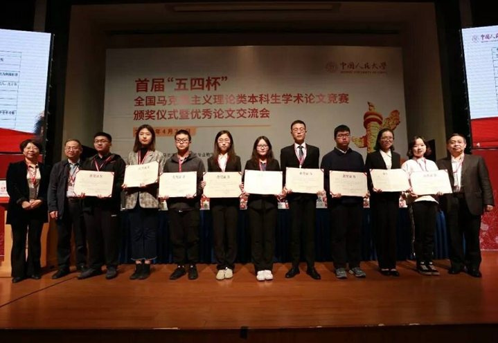我院思想政治教育专业2018级本科生褚奕雄同学获得由教育部高等学校马克思主义理论类专业教学指导委员会主办、中国人民大学承办的首届“五四杯”全国高校马克思主义理论类本科生学术论文竞赛二等奖,并受邀于4月21日参加了中国人民大学举办的竞赛颁奖仪式暨优秀论文交流会。
