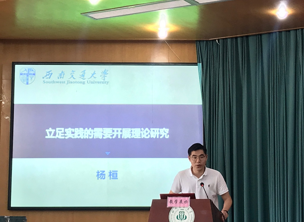 杨桓老师进行了主题为“立足实践的需要开展理论研究”(《马克思主义与社会科学方法论》)的教学展示。主要讲述了“实践需要是社会科学研究的出发点”、“研究选题要服务于我们认识世界改造世界”、“研究选题需要注意的四个问题”三个部分,受到了在场师生的好评。