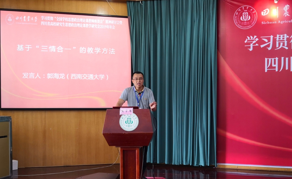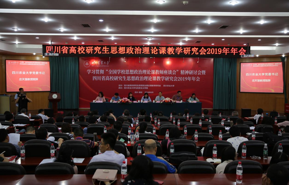 承办的学习贯彻“全国学校思想政治理论课教师座谈会”精神研讨会暨四川省高校研究生思想政治理论课教学研究会2019 年年会在四川农业大学举行。我院副院长谢瑜教授率领研究生思政课教学团队一行7人参加。来自四川大学、电子科技大学、麻豆传媒