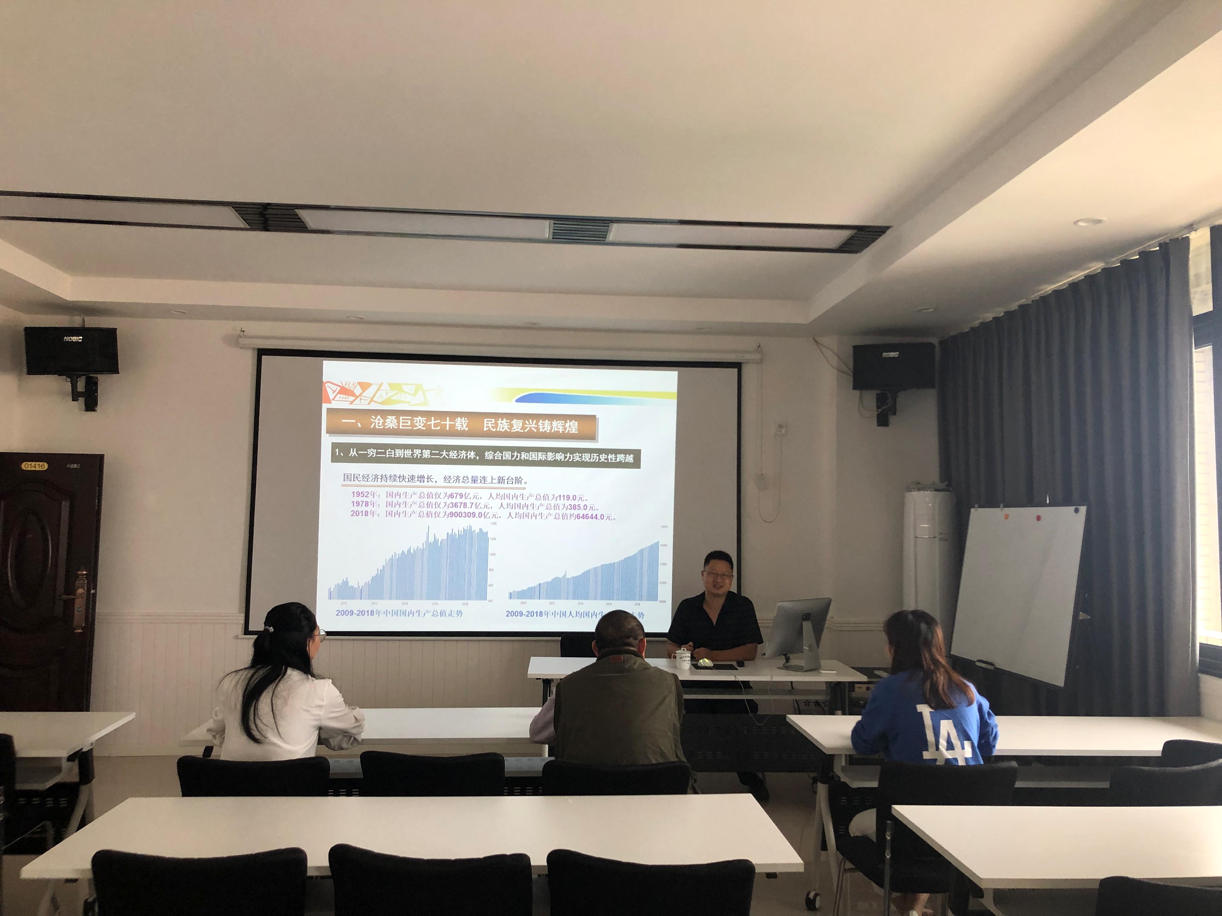2019年9月26日,形势与政策教研部支部在九里01417教室开展了支部活动,支部书记李子重同志以“不忘初心,牢记使命”中华人民共和国成立七十年民生成就为题,给支部同志讲授了一堂主题党课。李子重同志从建国到成为世界第二大经济体,综合国力和国际影响力实现历史性跨越;国家经济从结构单一到百业兴旺,产业结构持续优化升级;国民经济体系从瓶颈制约到优势支撑,基础产业和基础设施实现重大飞跃;国家治理从城乡分割到统筹推进,区域协调发展呈现新格局;对外开放从封闭半封闭到全方位对外开放,国际合作和经贸往来发展成就举世瞩目;从发展落后到创新驱动,科学教育事业欣欣向荣;从相对滞后到全面进步,社会事业繁荣昌盛;从温饱不足迈向全面小康,人民生活发生翻天覆地变化;等多个方面展示了中华人民共和国成立七十年民生成就。各位参会同志深受鼓舞,本次党课取得良好反应。