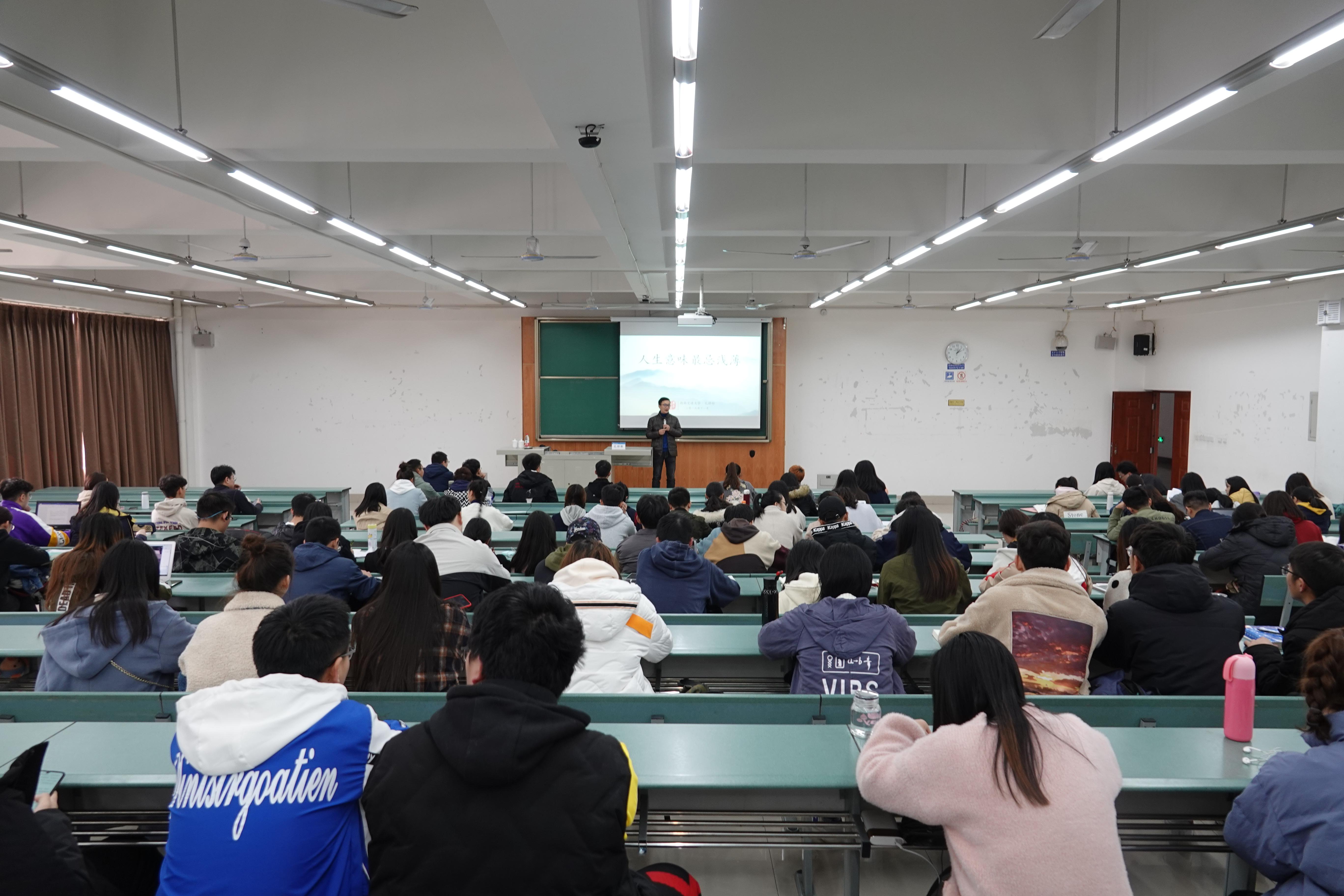 的同学们提问“学习是为了什么”来引发大家对学习的思考,由此展开本次讲座。首先他用马斯洛需求理论和“四我需求模型”向大家传授了学习不仅是学习书本知识,更是为了拓展自己素质,服务社会的道理。同时他用习近平主席的“无我”举例,告诉同学们人生意味最忌浅薄。紧接着,他向大家介绍了大学生应具备的“能力三把剑”,即专业知识技能、可迁移技能以及自我管理技能。随后,他给同学们分享了几种具体的学习方式,并用实际案例告诉同学们该如何学习。最后,他告诉同学们,在大学中,提高自己的能力,做自己想做的事才是最重要的。