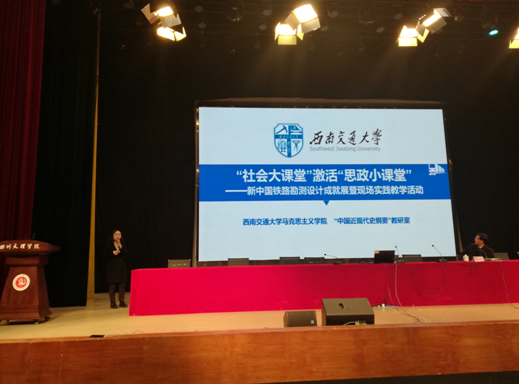 铁路行业特色,用“成渝铁路”“成昆铁路”“青藏铁路”“坦赞铁路”等十余条独特典型的铁路建设历程,以大量翔实的史料、深刻生动的解读,挖掘和阐释新中国铁路建设取得巨大成就的制度性因素,来推动思想政治理论课改革创新,不断增强思政课的思想性、理论性和亲和力、针对性,引起与会师生的兴趣,得到了较高的评价。