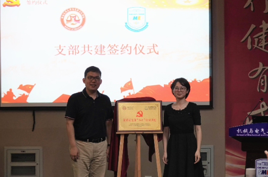 最后,魏鹏轩、邢斐完成党支部共建签约仪式,熊书记、耿书记为共建揭牌,这代表着两个支部将强强联合,共创辉煌!期盼两支部成员在未来以昂扬的姿态、优异的成绩,在建党百年之际,再创华章!