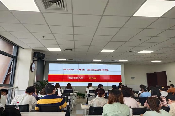 良好的学风,培养同学们正确的学术道德和学术规范意识,我院田永秀教授在X31325报告厅举办了 “学习七一重要讲话精神,塑造优良学风”主题讲座,2021级全体硕博研究生和2020级部分同学参与了本次讲座。