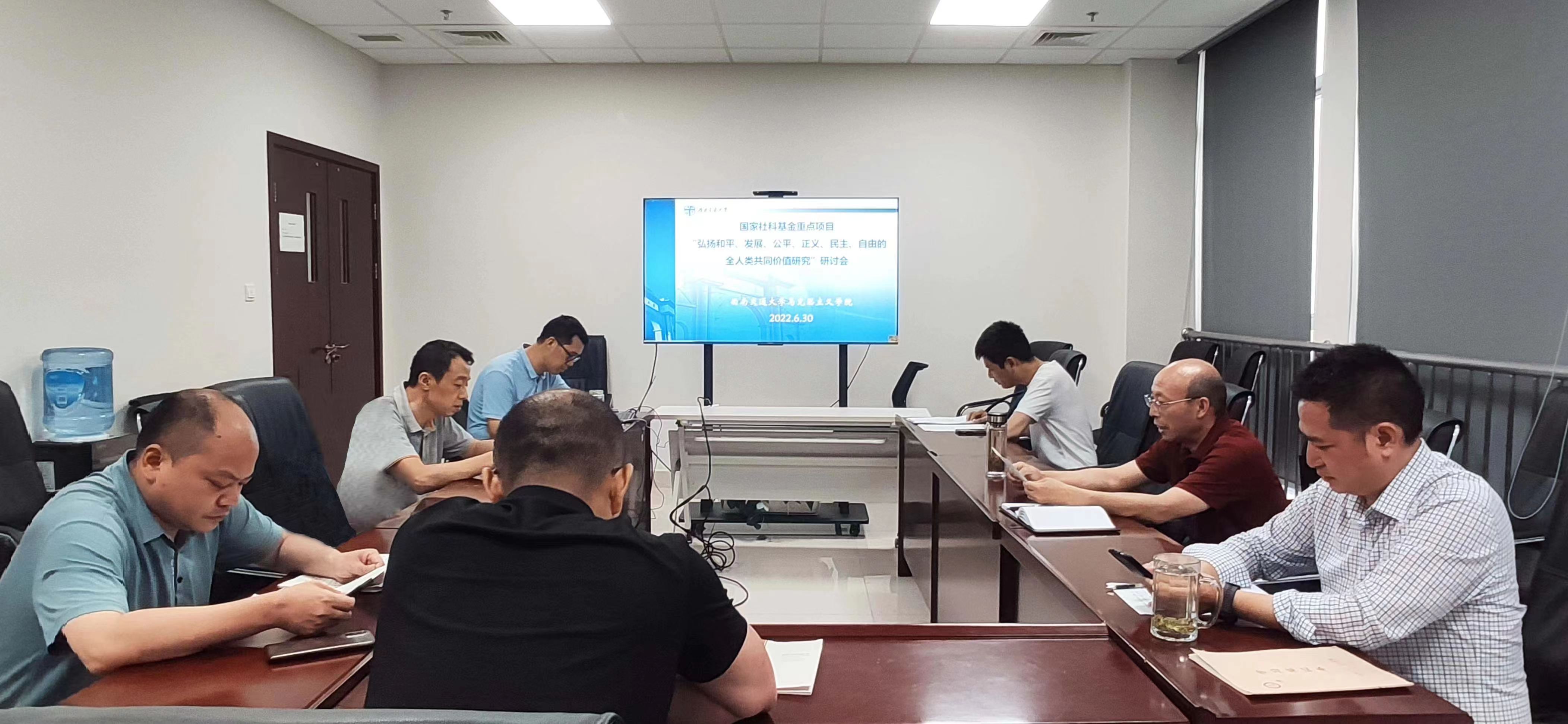 林伯海教授担任主持人的国家社科基金重点项目“弘扬‘和平、发展、公平、正义、民主、自由’的全人类共同价值研究”开题研讨会举行。课题主持人林伯海教授,项目成员、校内外相关专家学者参加了会议。