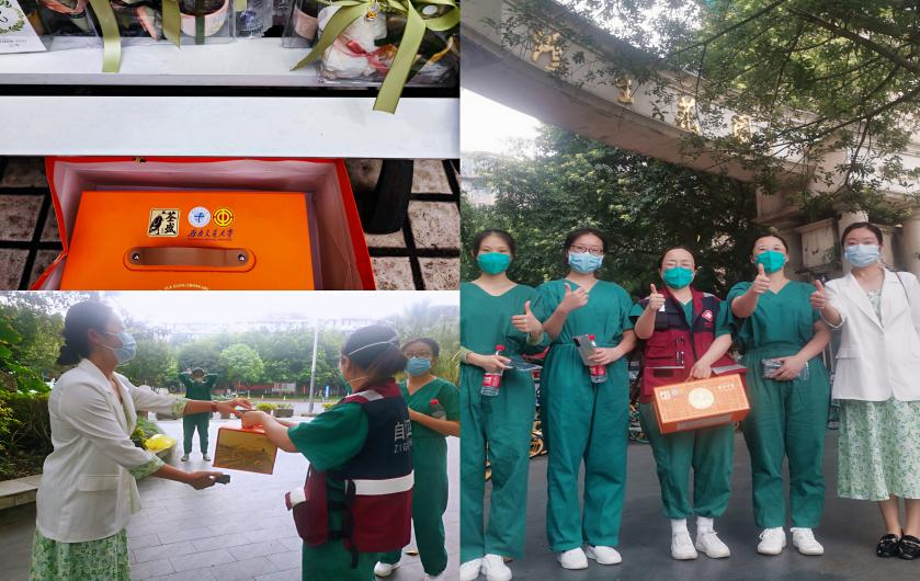 教师将具有交大特色的中秋月饼献给了自贡医护者代表。巴蜀儿女,命运与共,相信我们戮力同心,疫情终将早日结束,再次相聚烟火成都!