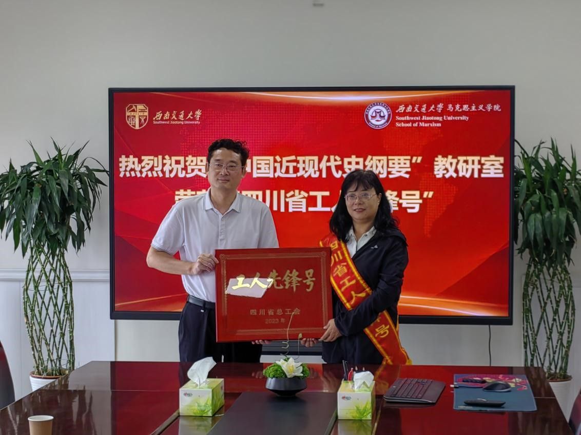 2023年4月25日,四川省庆祝“五一”国际劳动节暨表彰大会在成都举行,我院中国近代史纲要教研室荣获“四川省工人先锋号”称号。据悉,四川省仅有两所高校系所获此殊荣。