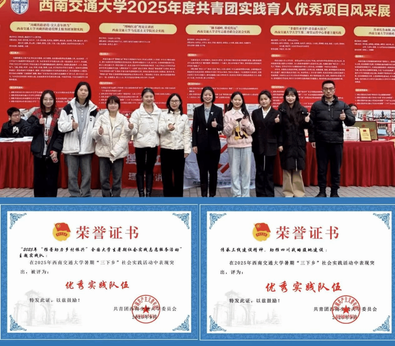 此次实践活动不仅是一次深入基层的调研,更是一堂生动的“大思政课”。充分展现了新时代青年传承红色基因、服务国家战略的担当。未来将继续挖掘三线精神的时代价值,探索其创新性传承路径,为助推四川战略腹地建设贡献交大青年的智慧与力量。凭借上述扎实的工作与显著的成果,该实践队最终荣获“校级优秀实践队”称号,并获评2025年成渝地区双城经济圈大学生三线建设文化资源大调查社会实践活动二等奖。